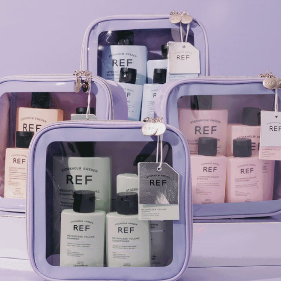 Restock the bathroom and bring your favourite REF Stockholm hair products on-the-go with this exclusive beauty bag.